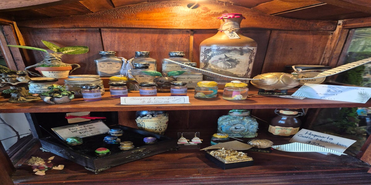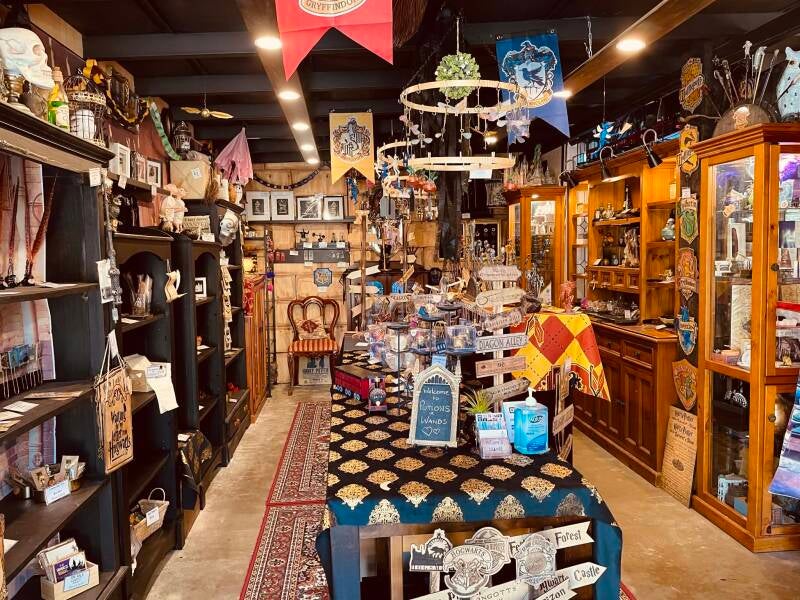Visitors to The Enchanted Forest are often drawn to Sognia’s displays, where shelves are filled with spellbinding pieces inspired by the wizarding world.