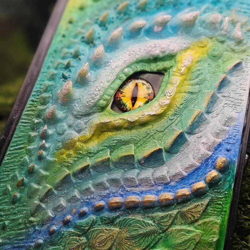 Create a mystical journal featuring a striking dragon eye on the cover — the perfect place to record spells, ideas, or magical thoughts.